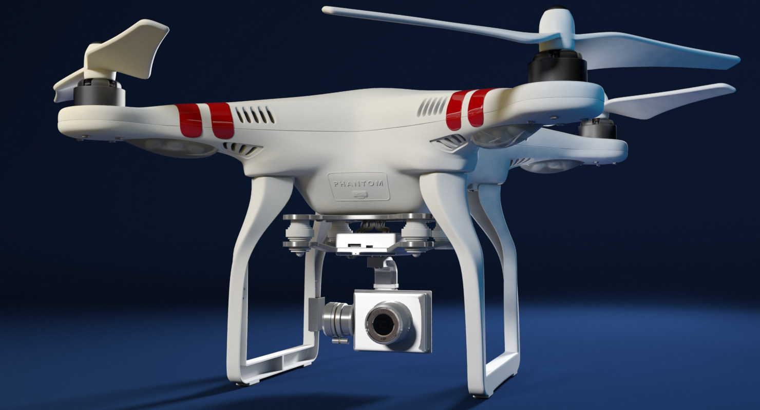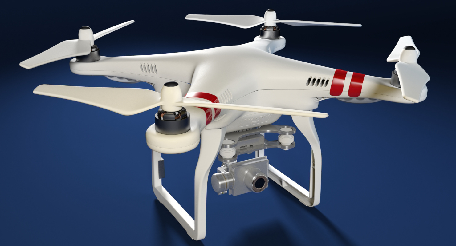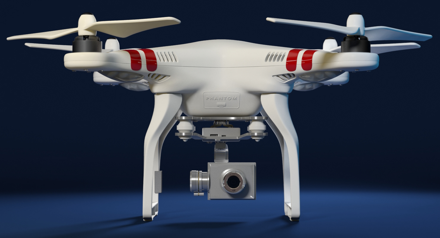 High-detail fully rigged 3D model of a DJI Phantom Vision 2 drone.